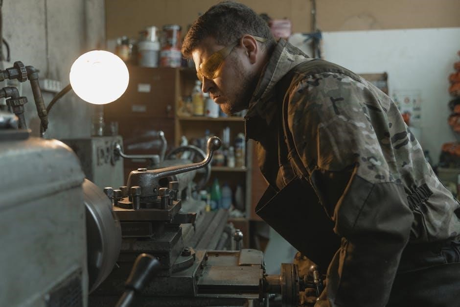 Diagnosing issues with the Craftsman 42 Inch Riding Mower begins with consulting the manual for specific troubleshooting guides. Essential tools include a multimeter for electrical checks, a pressure gauge for fuel systems, and basic wrenches for mechanical inspections. Start by identifying symptoms, such as poor engine performance or uneven cutting. Check common areas like the air filter, spark plug, and mower deck for blockages or wear. Use the manual’s diagnostic charts to isolate problems and determine the necessary repairs. Always follow safety guidelines when performing diagnostics to avoid accidents or further damage to the equipment.